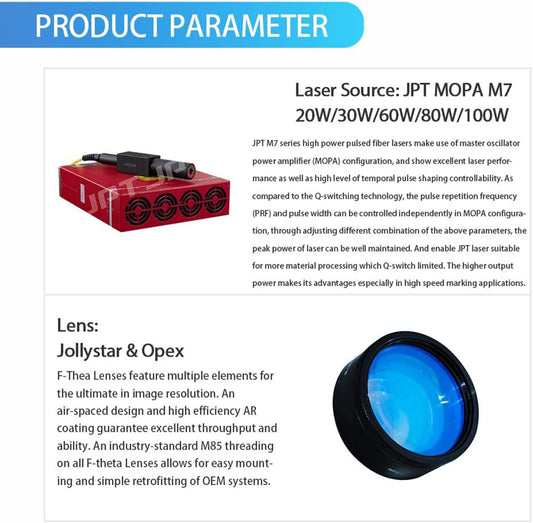 ZAC Enclosure 20W/30W/60W/80W/100W YDFLP-E-M7-M-R JPT MOPA M7 Fiber Laser Engraver Laser Marking Machine EZCAD2.0