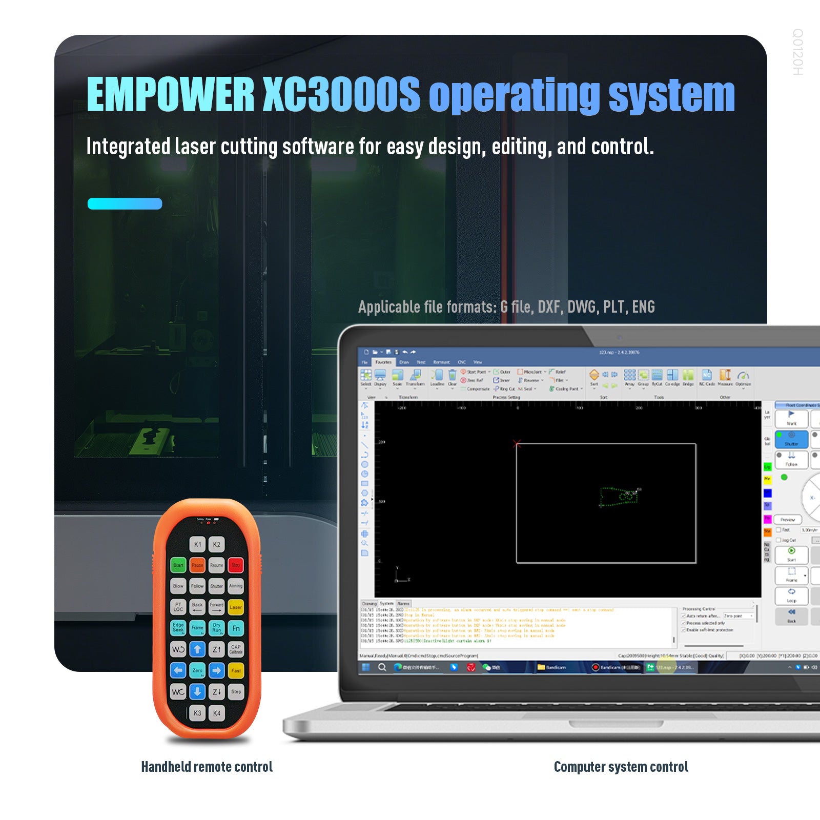 - SATBEL CUTTING & ANTI-REFLECTION PROTECTION: Equipped with advanced anti-reflection fiber laser technology, this metal laser cutter reduces laser source damage and failure rate by up to 40%. Three-axis adjustable focusing system and lead screw transmission ensure 0.03mm positioning accuracy and consistent cutting quality on reflective and non-reflective materials. Built-in air-cooled heat dissipation system eliminates the need for water chiller, lowering maintenance cost. Integrated EMPOWER XC3000S CNC control system supports DXF, DWG, PLT, G-code, and ENG files for easy design, editing, and automatic laser cutting.
