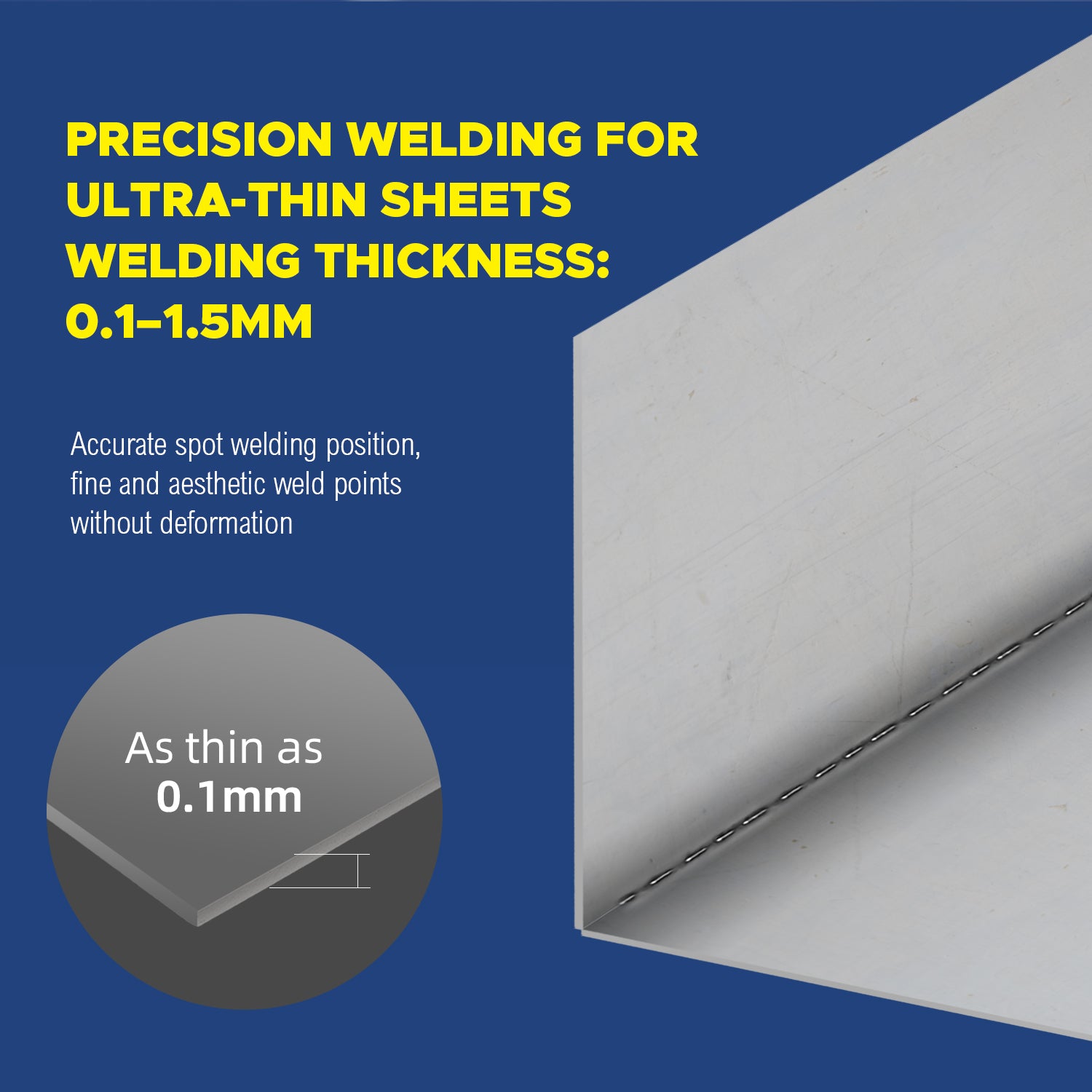 2-in-1 WELDING & CUTTING FUNCTION - The portable spot welder supports both welding (0.1–1.5mm) and cutting (0.1–1.2mm). The handheld welding pen weighs only 100g(0.22lb), allowing long working sessions with excellent control and stability. Engineered for micro-fabrication and thin metal welding, delivering accurate and clean welds. Minimal heat-affected zone ensures no deformation and no secondary polishing required