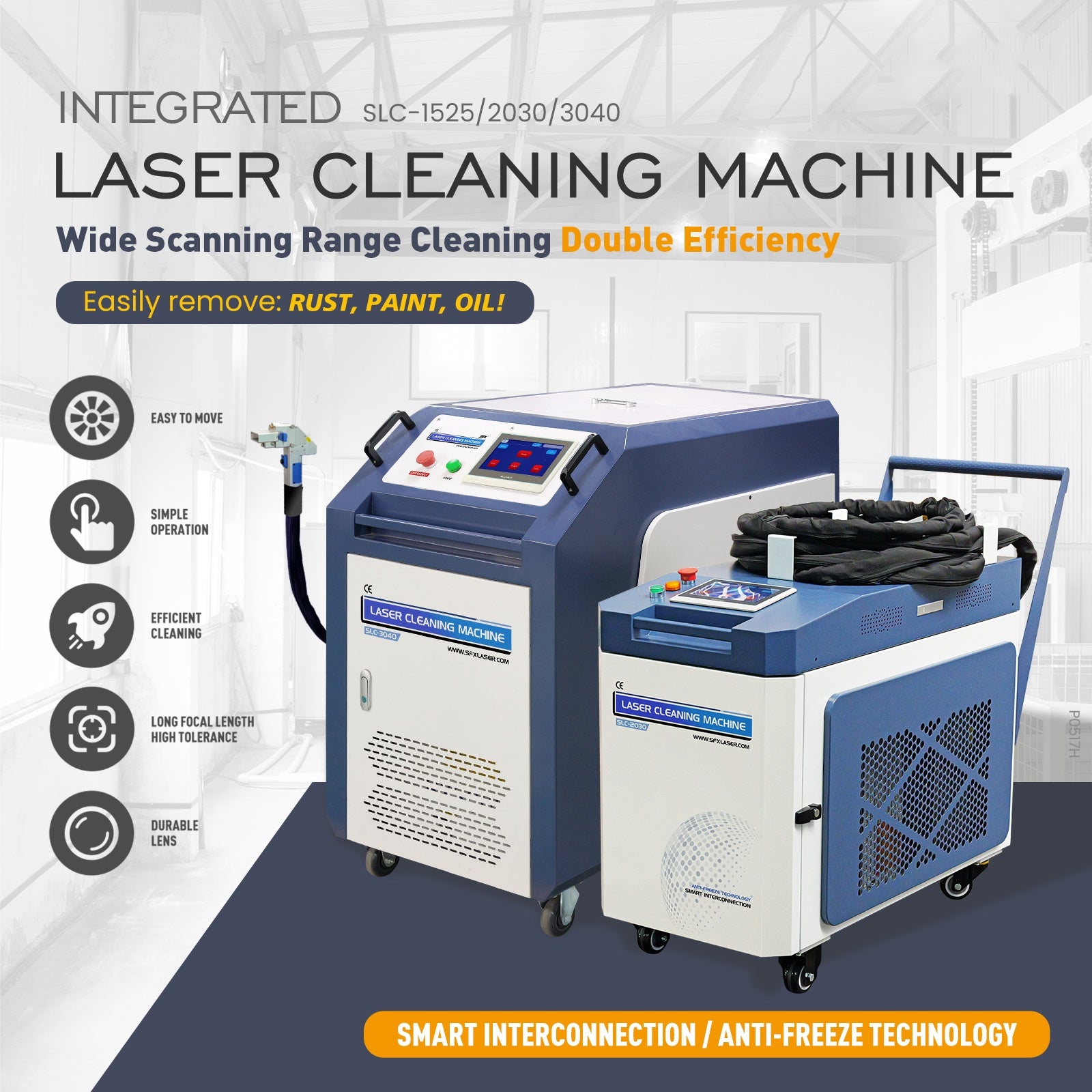 - INTEGRATED DESIGN - Unlike traditional models, this compact laser cleaner features a fully integrated build: laser source, air-cooled system, and control unit in one. It’s dust-proof, field-ready, and supports true plug-and-play operation—no extra chiller or stabilizer needed.