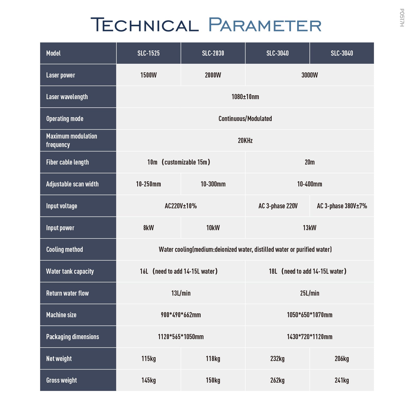 TECHNICAL PARAMETERS