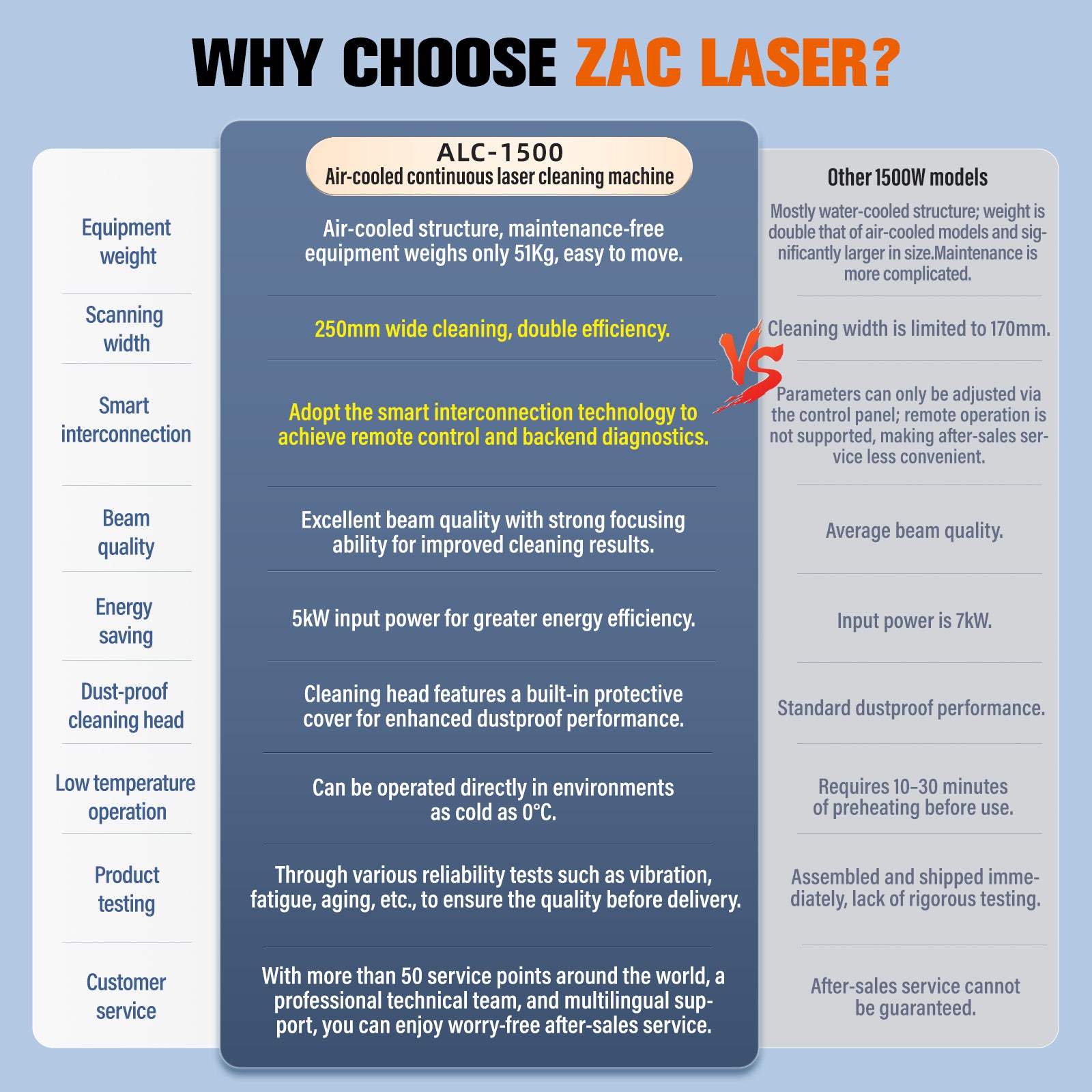 ZAC 1500W Continuous Laser Cleaning Machine 220V Laser Rust Removal with IOT Technolofy for Metal Rust Oil Paiting Coating