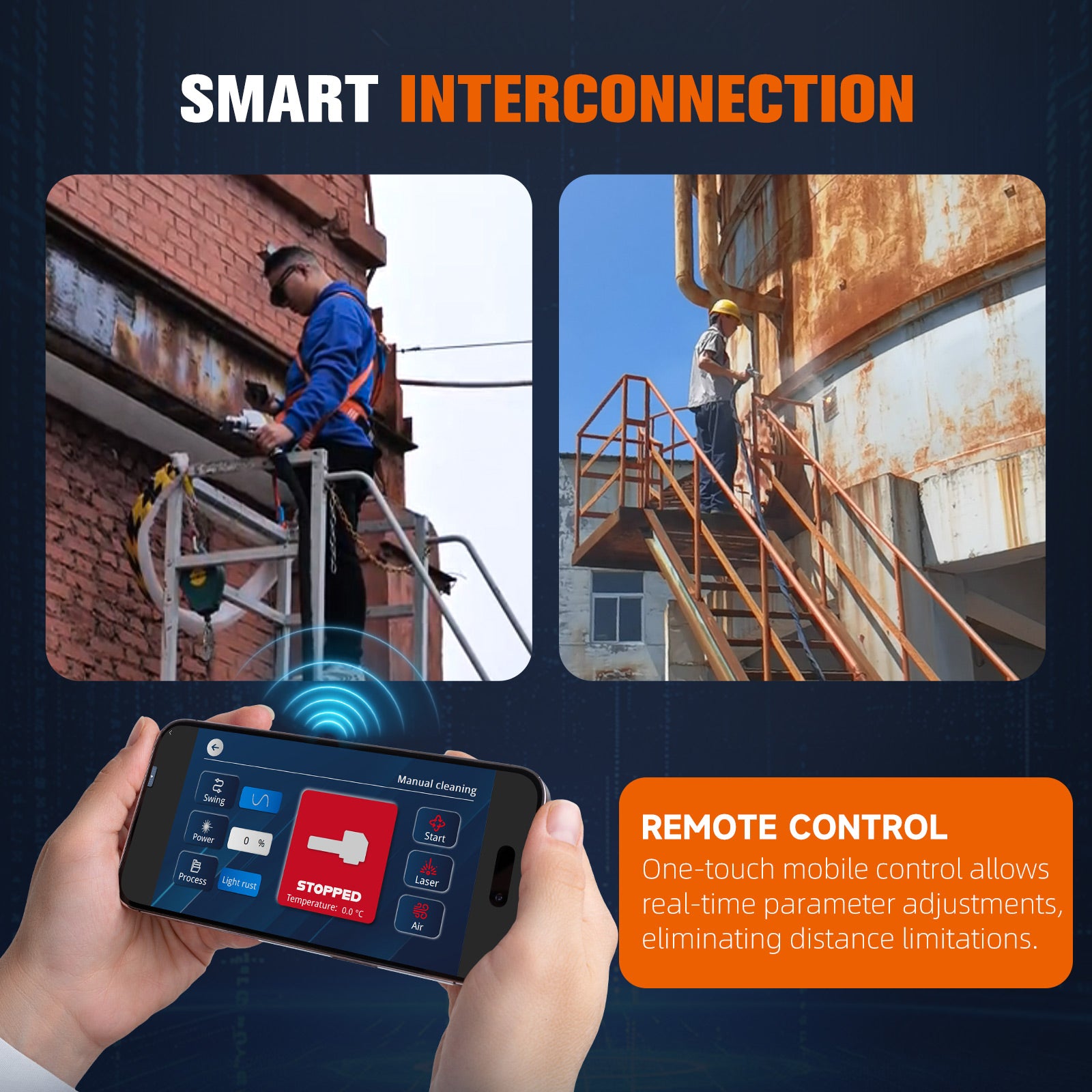 - SMART IOT CONTROL - Built with IoT functionality, the laser cleaning machine allows for remote parameter adjustments and real-time monitoring. In case of technical issues, our support team can access the system remotely to provide fast and efficient diagnostics. Additionally, the advanced cleaning control system features 6 preset cleaning processes and 3 custom ones to accommodate different cleaning requirements.
