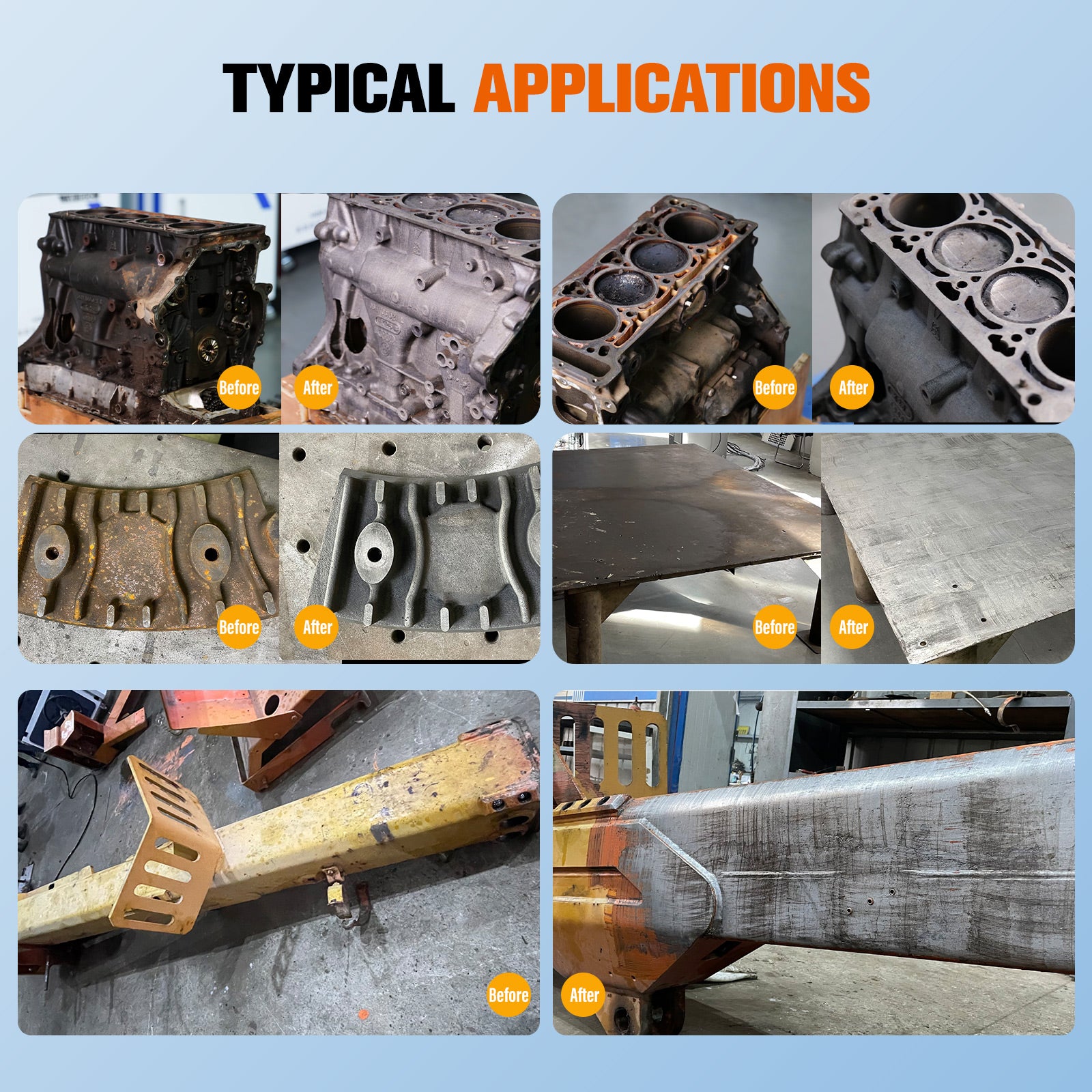 - WIDE APPLICATIONS - The laser rust remover is suitable for use across multiple industries such as automotive restoration, aerospace, marine engineering, equipment manufacturing, and mold processing. It effectively removes rust, oxide layers, paint, grease, and graffiti from metal surfaces. This machine is particularly valuable in tasks such as classic car restoration, welding seam cleaning, and precision surface preparation.