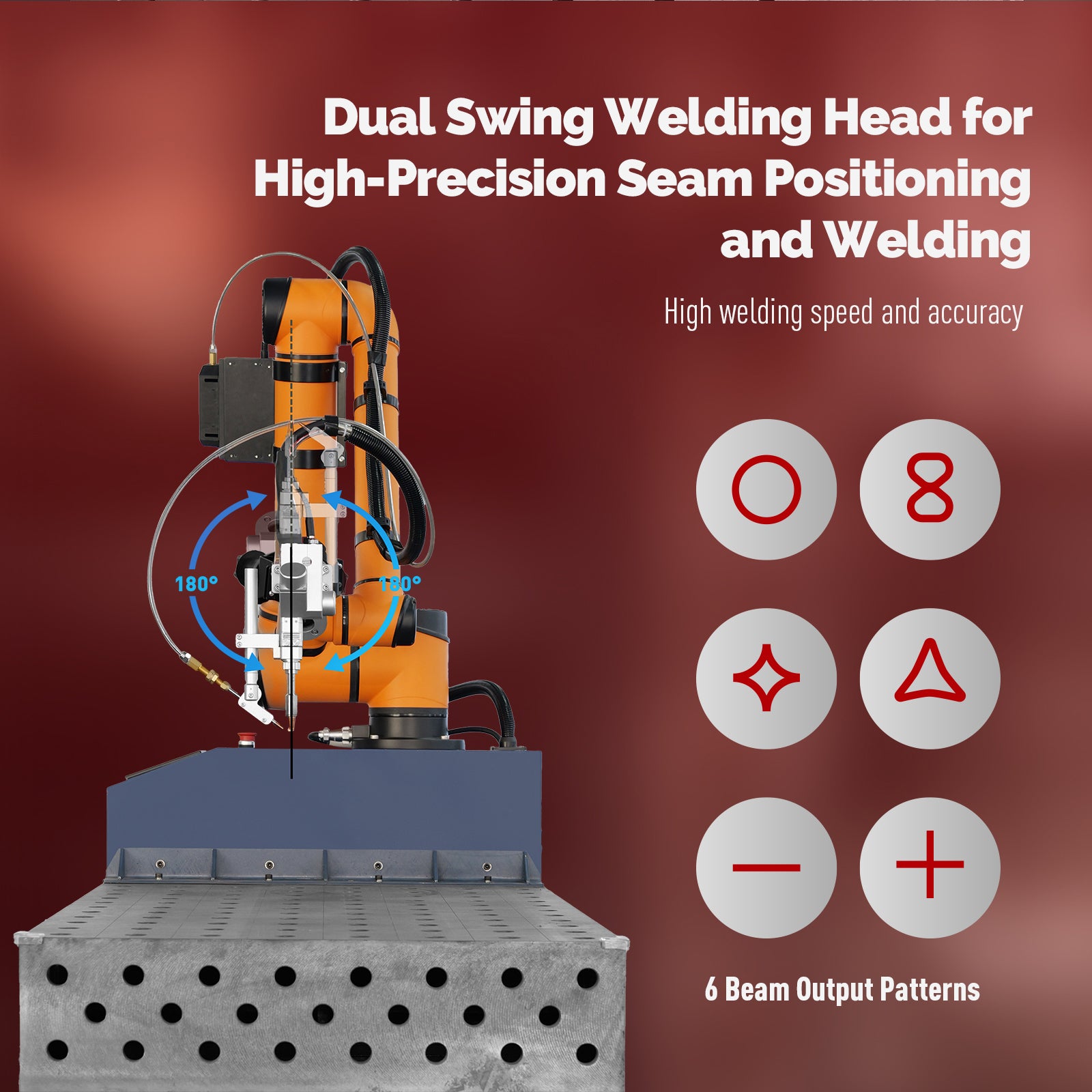 - PRECISE SEAM WELDING: Features a dual swing welding head that enhances seam positioning accuracy and weld quality. Supports 8 swing modes and multiple angle adjustments, making it ideal for irregular or customized welding jobs in high-demand production lines.