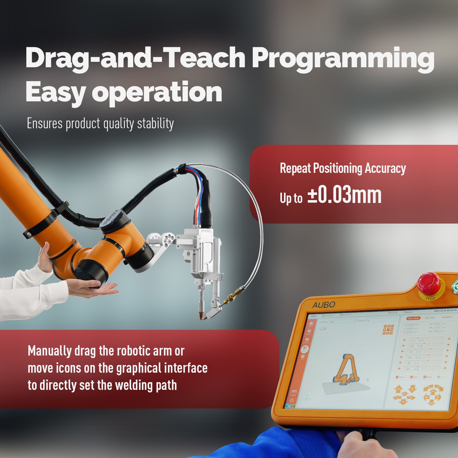 - INTUITIVE OPERATION: Supports drag-and-teach programming via manual guidance and touchscreen interface. Operators can record welding paths without code, significantly reducing setup time and training requirements.