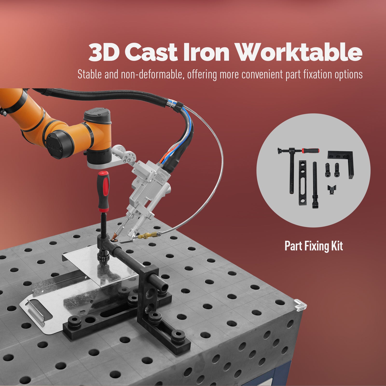 - INTEGRATED WORKTABLE: The robust 3D cast iron platform includes a metric-positioning grid for precision part alignment. The table is modular and expandable, accommodating small parts and large structures alike.