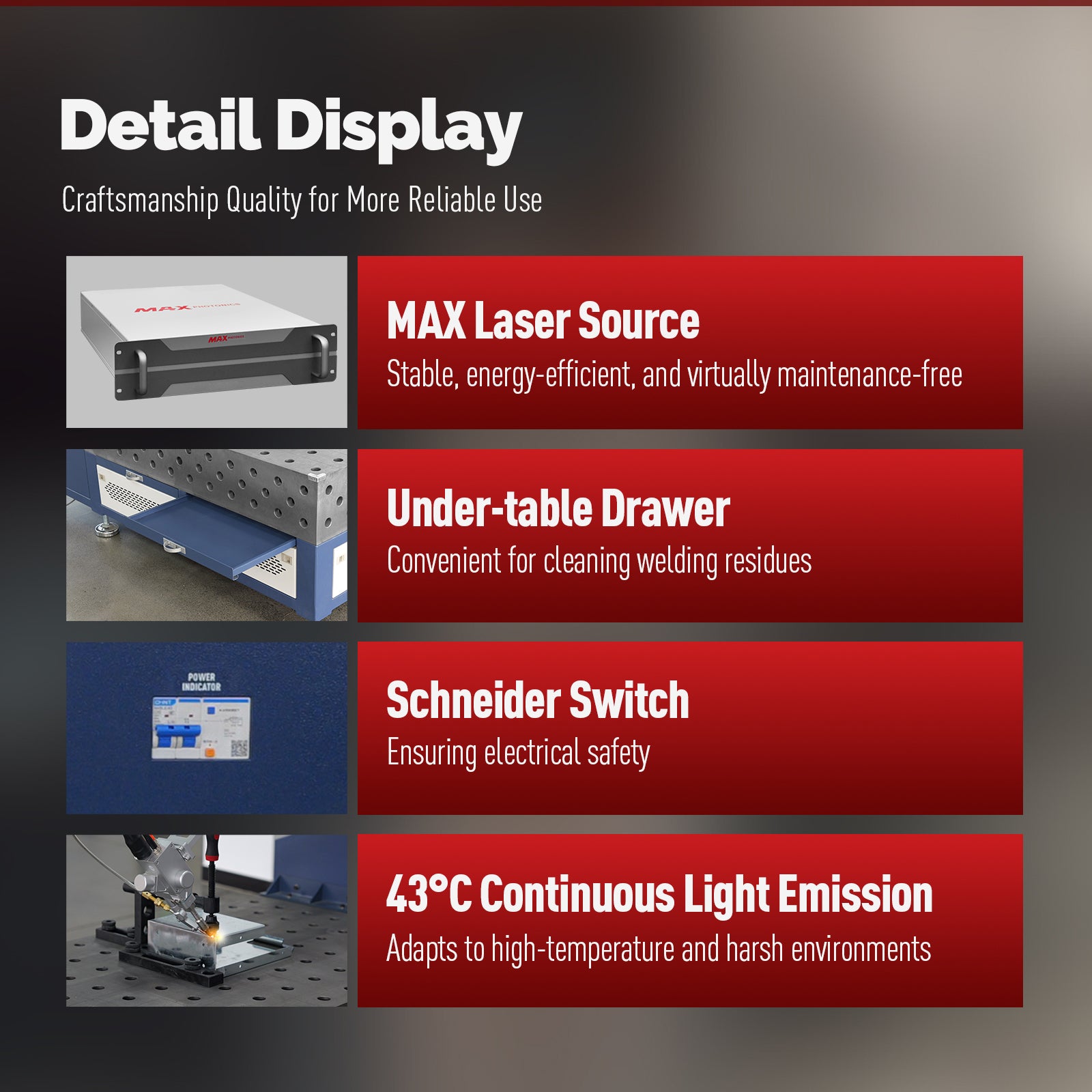 - INDUSTRIAL-GRADE DESIGN: Engineered for durability and continuous operation, the system uses vibration-resistant components and sealed cable routing. Optional safety sensors and shielding ensure operator protection during laser welding.