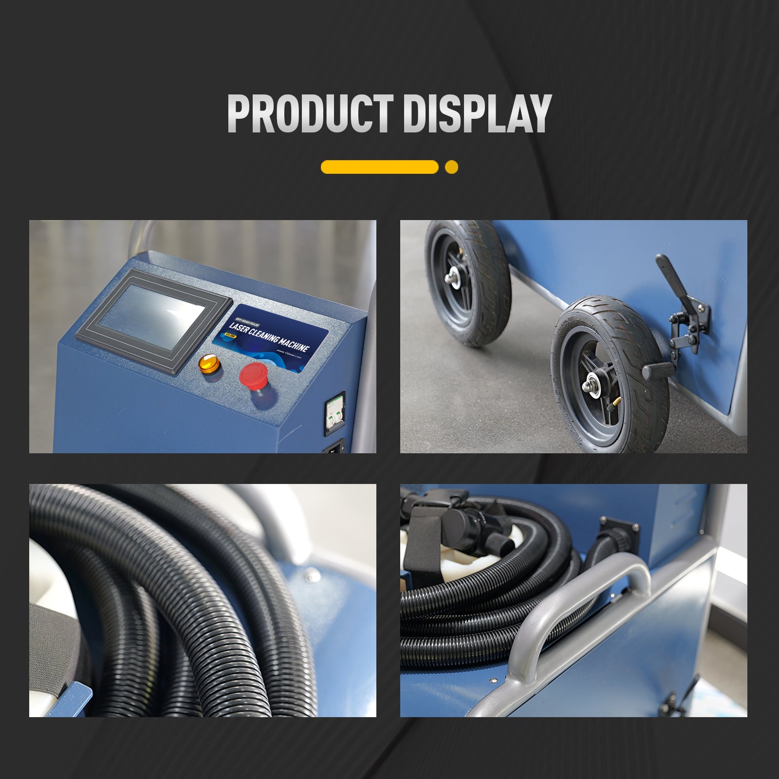 - Off-ROAD DESIGN-Different traditional pulsed laser cleaner, this off-road laser rust remover is designed with movable wheels which makes it easy to clean outdoors and in many difficult areas and complex environments. There are many heat dissipation holes outside the machine which highly protect the laser source. Brake on both sides of the wheels to protect your safety provides you with a more stable cleaning.