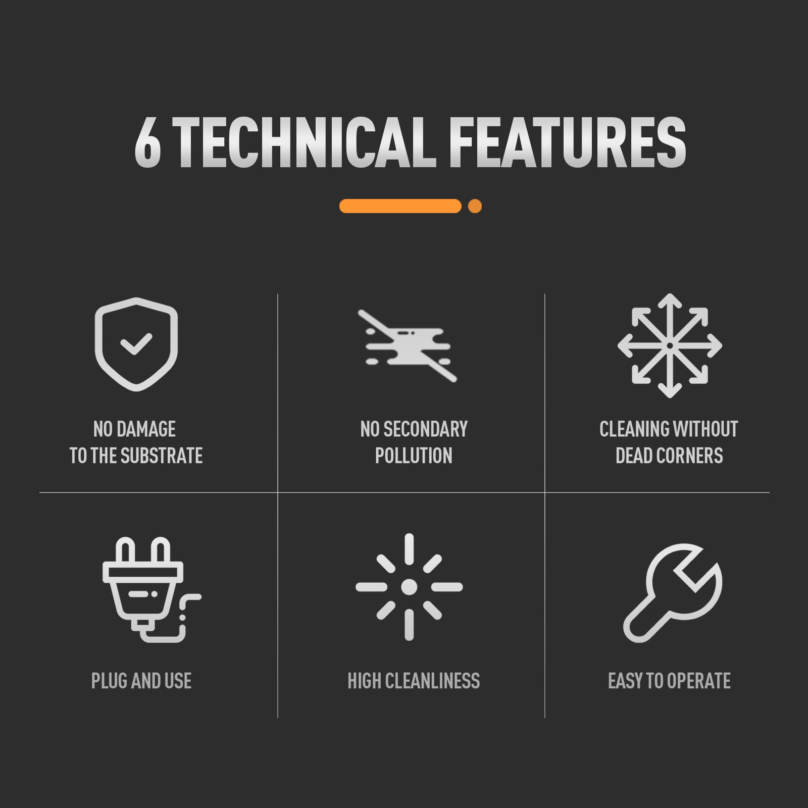 - HIGH EFFICIENCY-This pulsed laser rust removal can greatly control the input power to forbid the high temperature of the workpiece and realize less loss of it. The cleaning head is ONLY 1.36 lbs, and the laser cleaning gun is designed with ergonomics which is convenient for you to clean for a long time without burning tired.